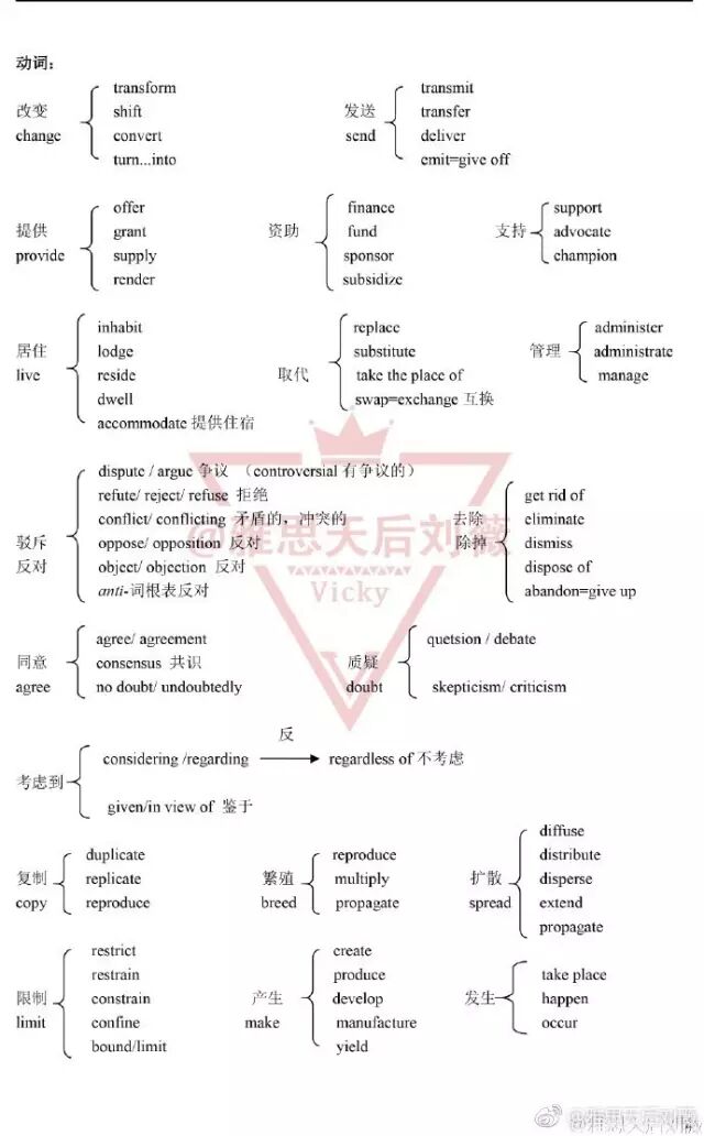 如下所示,这些词大部分来自雅思阅读,大家平时在做阅读题时,要注意总结和整理同义词,便于替换。
